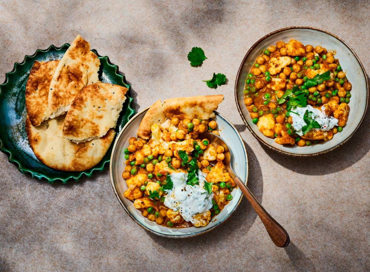Curry madras maak je met wat simpele tweaks ook gewoon lekker vega! Gebruik kikkererwten en bloemkool voor in de saus en daarna dippen maar met naan.