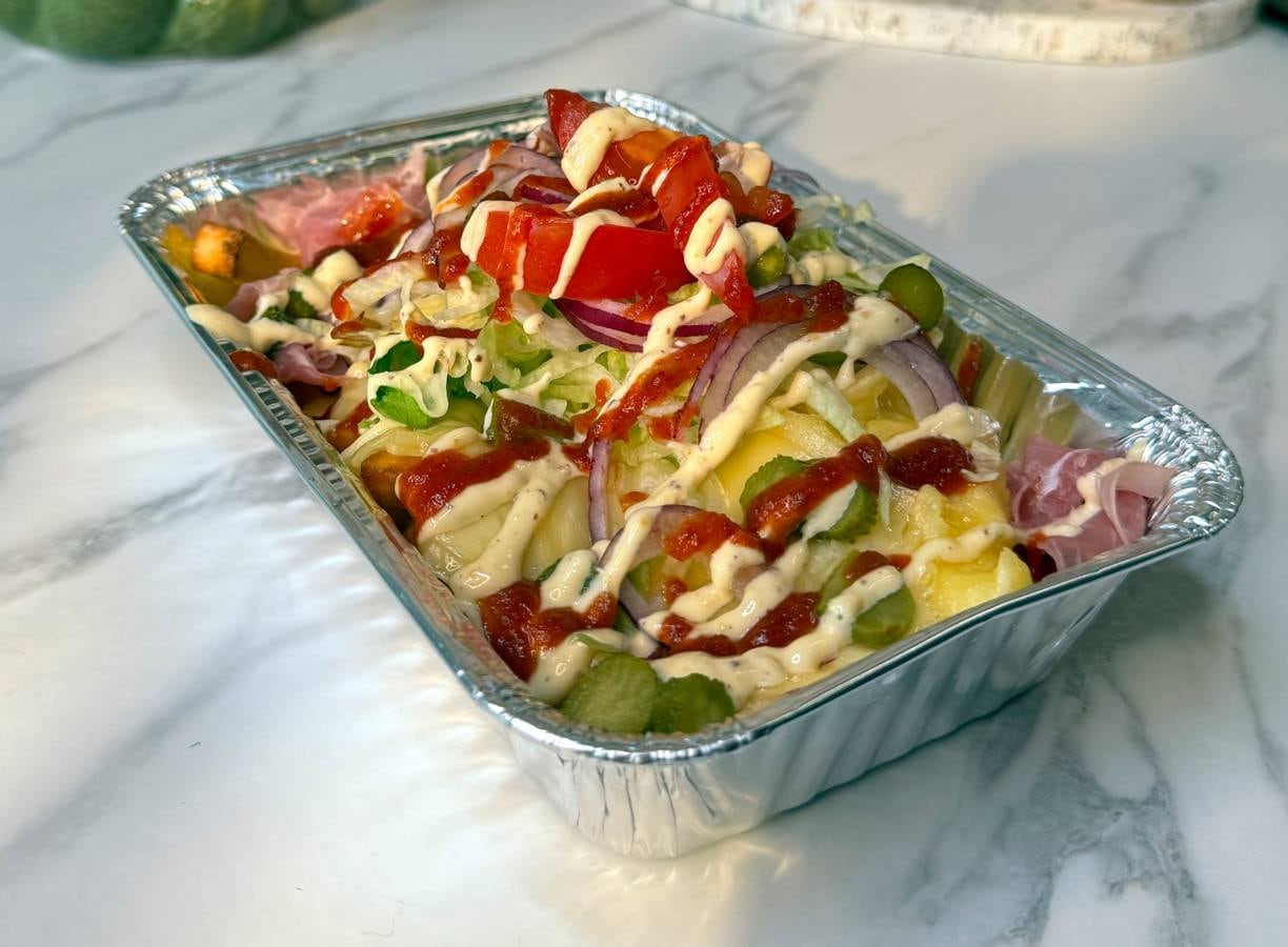 Raclette + kapsalon = raclapsalon? Deze kapsalon met raclette kaas, flinterdunne ham en augurkjes is je nieuwe favoriete guilty pleasure deze winter.