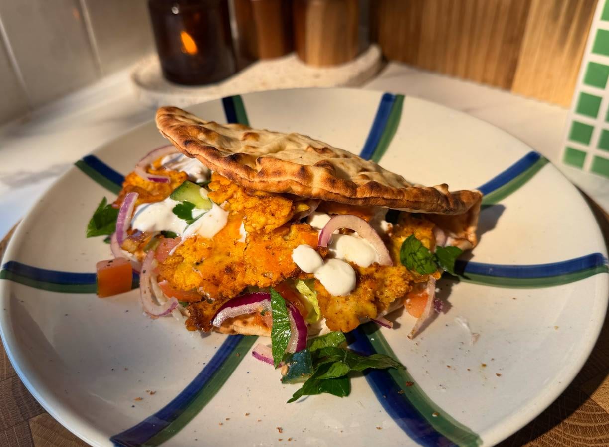 Halloumi 'shoarma' op eiwitrijk flatbread