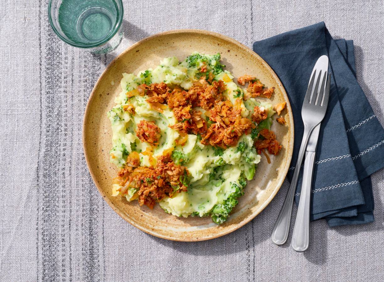 Broccolistamppot met pittige tonijn