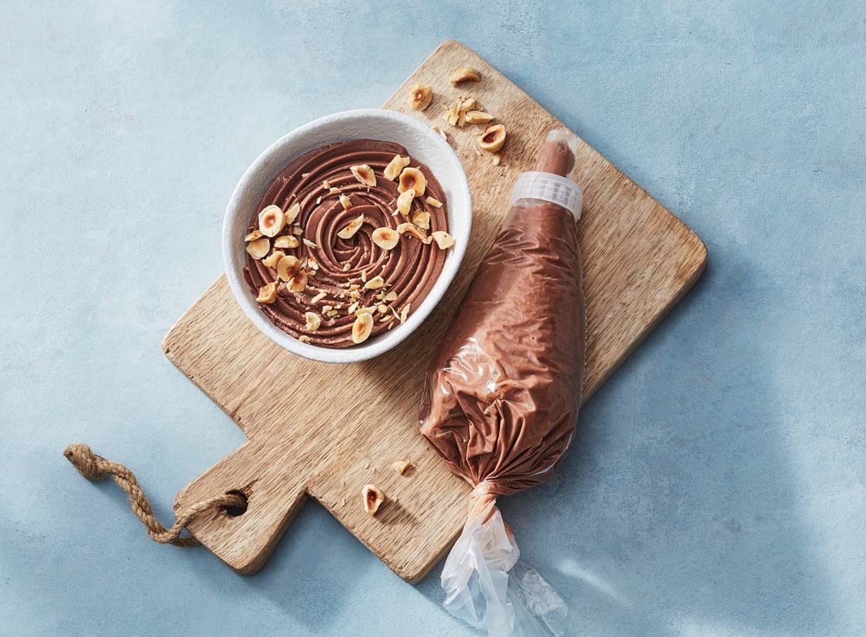Meng de mascarpone en hazelnotenpasta goed door elkaar.