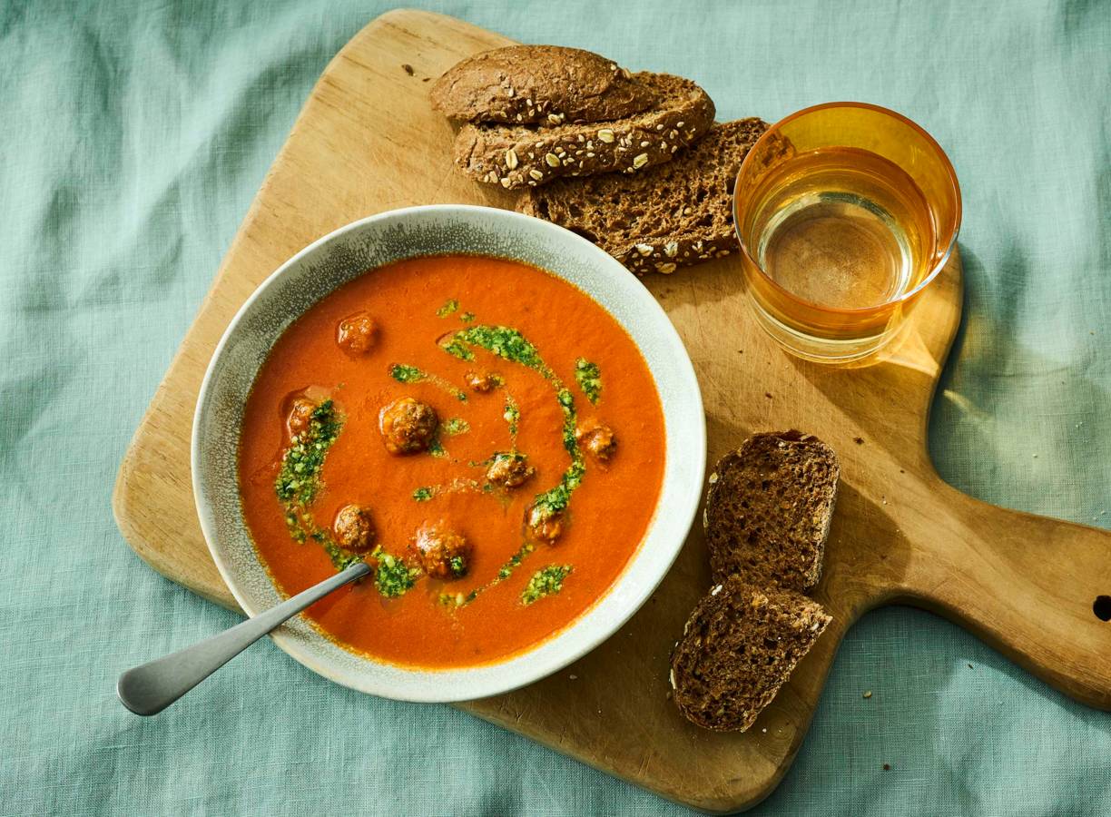 Geroosterde paprika-tomatensoep met gehaktballetjes (advertorial)