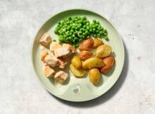 Krieltjes met kip en tuinerwten: een voedzaam en kleurrijk Opperdepop-gerecht voor je kleintje vanaf 12 maanden. Zachte krieltjes, malse kip en zoete erwten – lekker en makkelijk te eten!