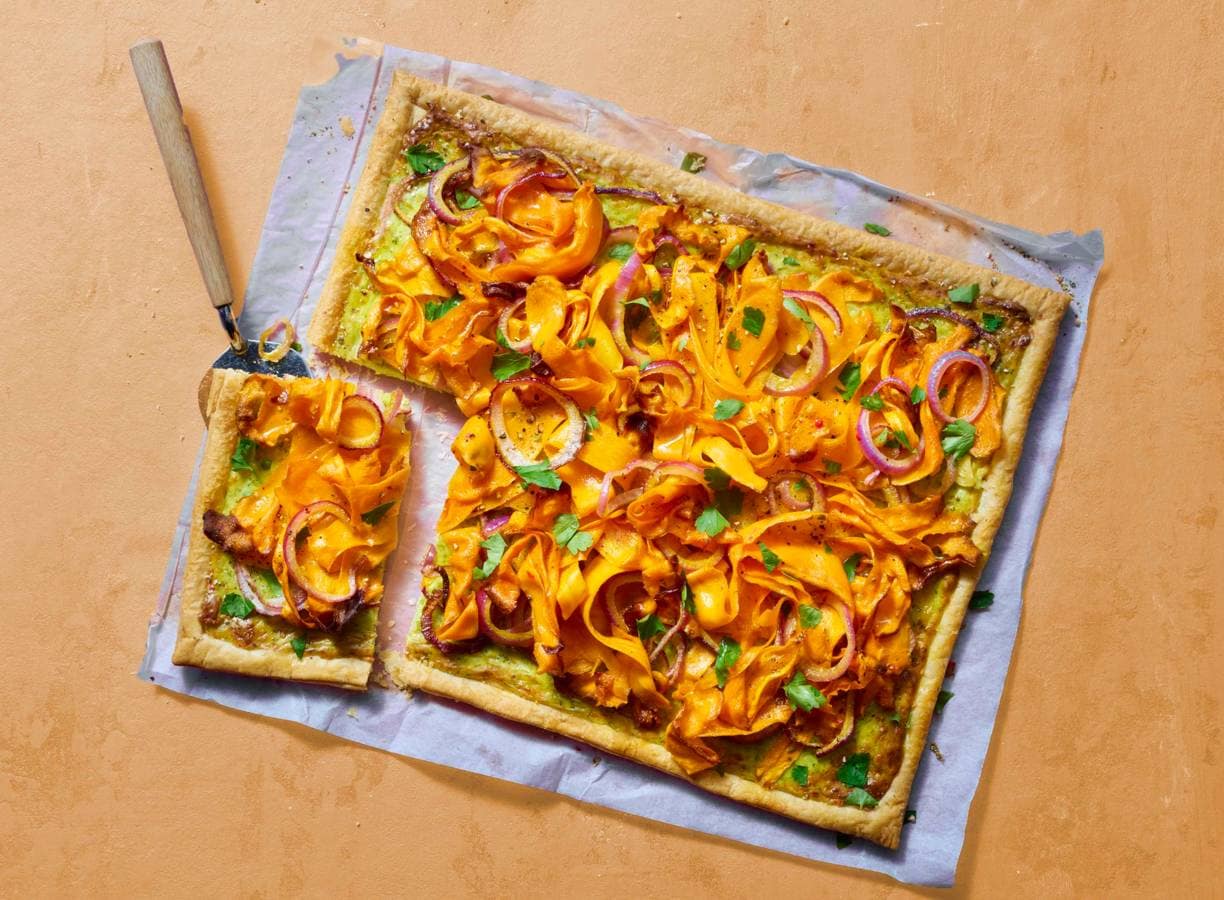 Plaattaart met peen en kruidenricotta