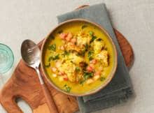 Uien-masalasoep met appel en kaascroutons van London Loy