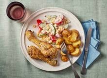Kip met krieltjes uit de airfryer en gemengde salade