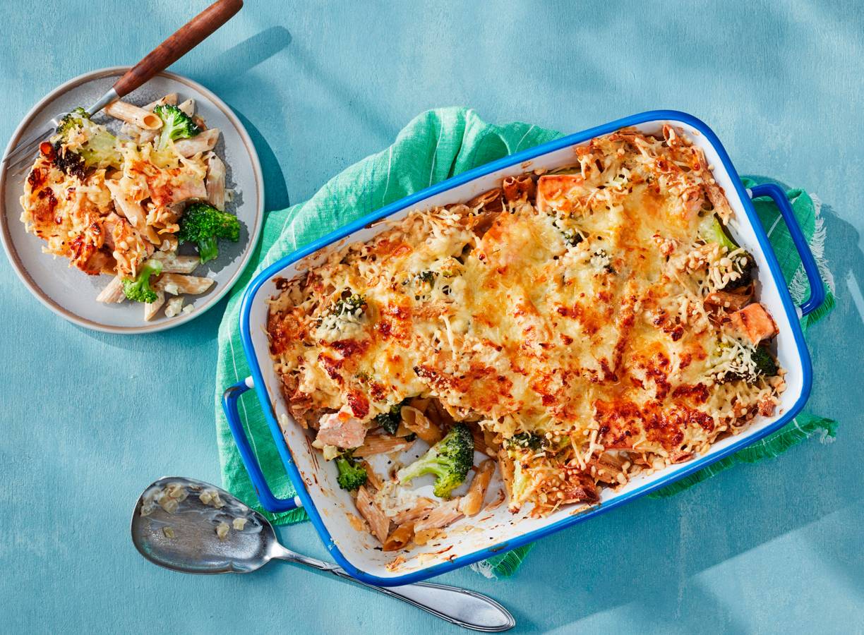 Deze gezonde ovenschotel is niet alleen heerlijk maar staat ook al met 20 minuten in de oven. Broccoli en volkoren penne in een romige saus van wilde zalm met smaakvolle kruiden en niet te vergeten een krokant laagje kaas bovenop. Dat wordt genieten!