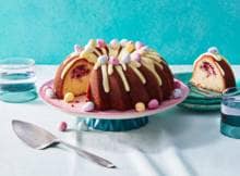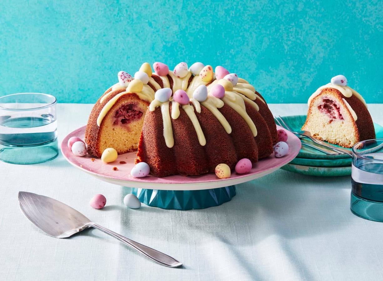 Kies deze Pasen voor een klassieker met een vrolijke twist: een luchtige tulband met framboos en paaseitjes die niet alleen luchtig en fris is, maar er ook nog ‘ns feestelijk uitziet! Hét pronkstuk voor op de paastafel.