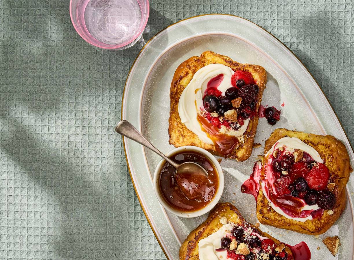 Cheesecake-wentelteefjes met zomerfruit en stroop (advertorial)