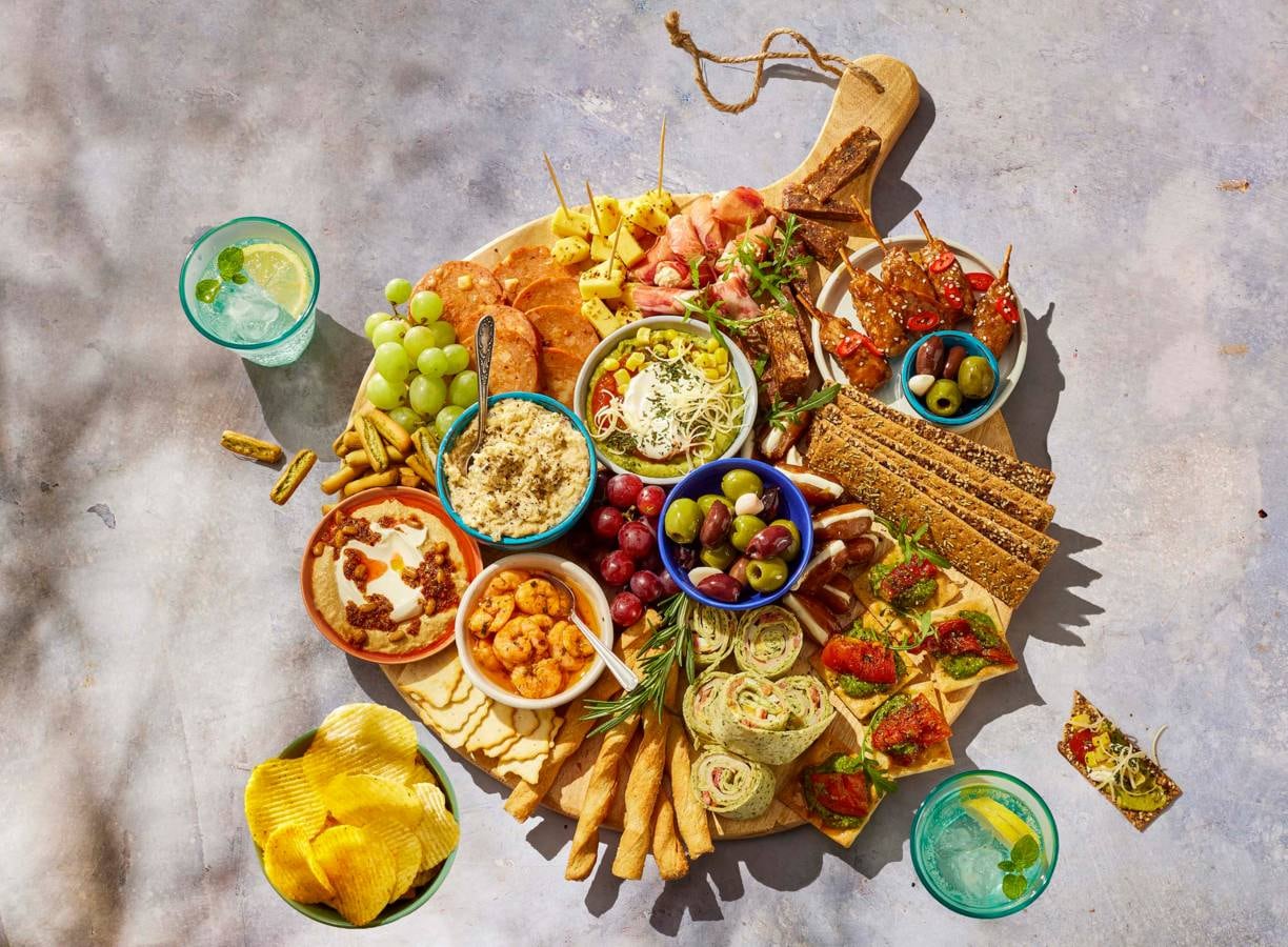 Tover de tafel om tot een zomers feestje met deze spectaculaire borrelplank vol kleur en variatie. Van luxe fuet en romige kruidencamembert tot vis en frisse snoepgroente. Een waanzinnige eyecatcher met voor ieder wat wils.