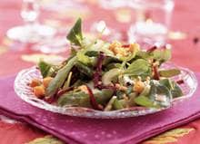 Bleekselderij schoonmaken en in boogjes snijden. In kom rucola, veldsla met bietjes en bleekselderij mengen. Vinaigrette er vlak voor serveren door mengen en salade bestrooien met croutons.