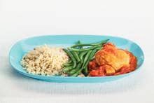 Tarly bereiden volgens gebruiksaanwijzing. Uien en knoflook pellen en snipperen. Peper schoonmaken, zaadjes verwijderen en fijnsnijden. Kip in 4 stukken verdelen en met zout en peper bestrooien. In braadpan boter verhitten. Kip rondom bruinbakken. Ui, knoflook en peper toevoegen en 3 min. meebakken. Tomatenblokjes toevoegen en kip afgedekt 10 min. stoven. Met zout en peper pittig op smaak brengen. Intussen sperziebonen schoonmaken en in 8 min. beetgaar koken. Kip met saus, sperziebonen en tarly serveren.