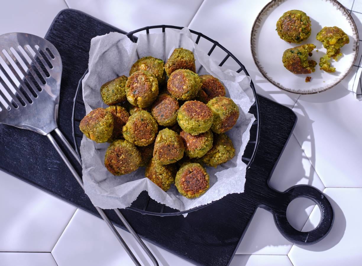 De take-away snack uit eigen keuken: gefrituurde vegetarische balletjes uit het Midden-Oosten. Lekker op een pitabroodje met knoflooksaus.