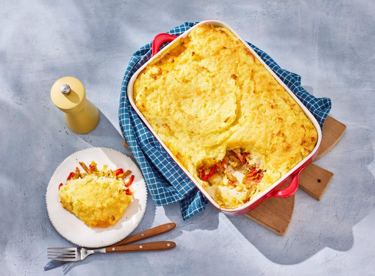 Shoarma-ovenschotel met knoflookpuree