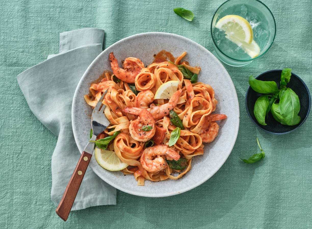 Garnalen, knoflook en tomaat: dit trio máákt dit pastagerecht.