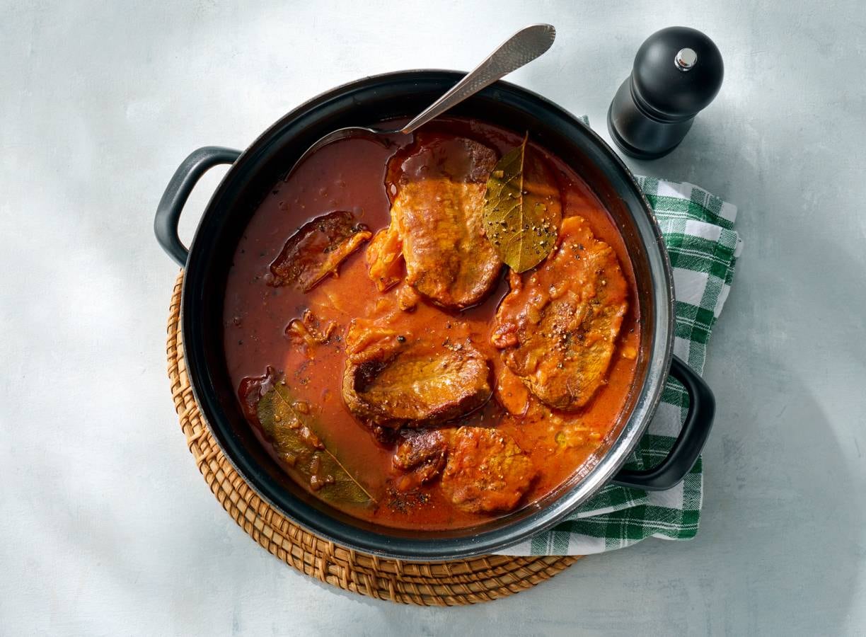 bereidingstip:Gebruik een vlamverdeler om het vlees zo zacht mogelijk te laten stoven. Je kunt de jus binden met 1 theelepel (met water gladgeroerd) aardappelmeel of maïzena.