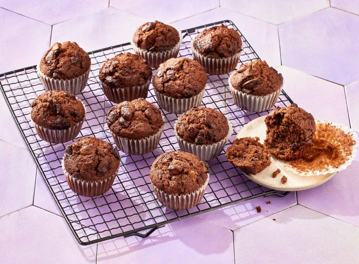 Verdeel het beslag over de muffinvorm en bak in 15-20 min. gaar. Laat eerst 5 min. in de vorm, en vervolgens uit de vorm op een rooster afkoelen.