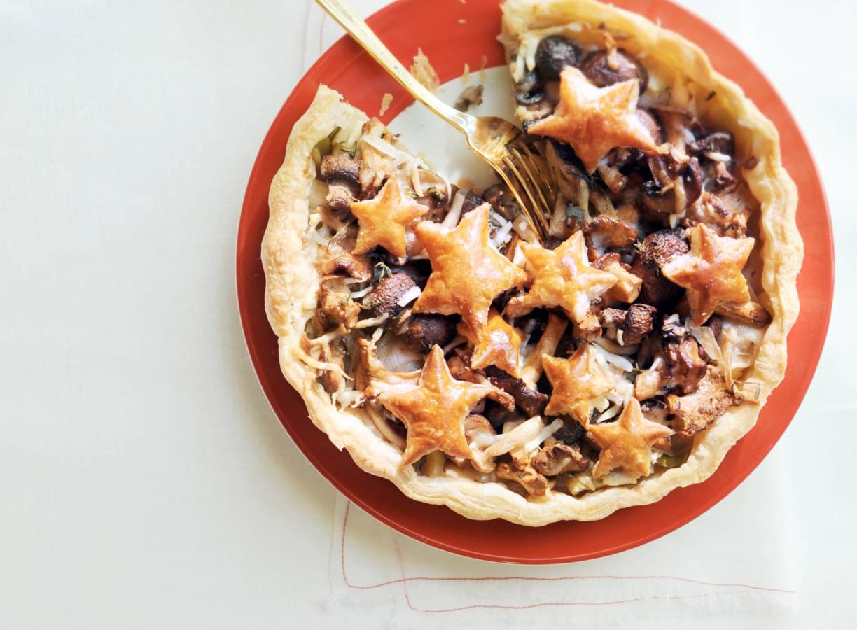 Paddenstoelen-preitaart met bladerdeegsterren