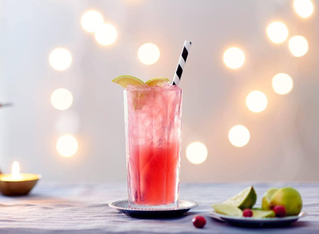 Meng de wodka, de cranberrydrink en de grapefruitsap in een cocktailshaker of maatbeker. Snijd 1 limoen in 6 partjes en pers 1 limoen uit. Roer het sap door de cocktail. Doe de ijsblokjes in een schone theedoek en sla het ijs fijn met een deegroller. Schep in 6 hoge glazen en schenk de cocktail erover. Garneer met partjes limoen.