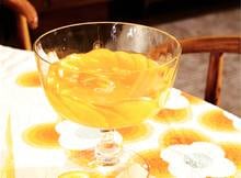 Pers 6 sinaasappels uit. Snijd de schoongeboende sinaasappels in dunne plakken. Doe alles in een grote schaal en schenk er de prosecco en gembersiroop bij.