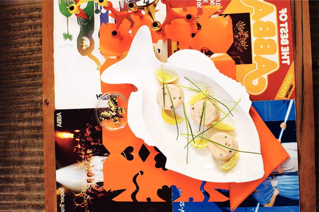 Rasp de gele schil van de citroen. Pureer de vis met het gelatinevocht in de keukenmachine. Voeg het rasp, de mierikswortel en kappertjes toe en schep om. Klop de slagroom stijf en spatel erdoor. Breng op smaak met peper en zout. Verdeel over de timbaaltjes. Laat minimaal 3 uur opstijven in de koelkast. Stort op een schaal. Lekker met bieslook.
