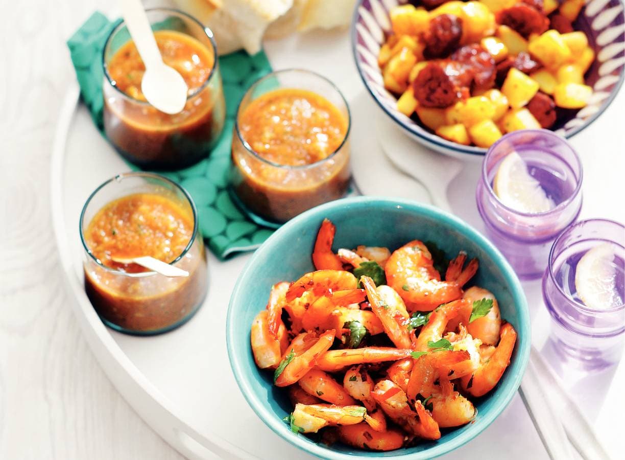 Snijd de ongeschilde aardappelen in blokjes van 2 cm. Kook ze 7 min. in water met zout en giet af. Bak de stukjes chorizo in een hapjespan zonder olie of boter 3 min. op middelhoog vuur. Voeg de aardappelblokjes toe en bak 5 min. mee. Schep regelmatig om en serveer in een schaal.