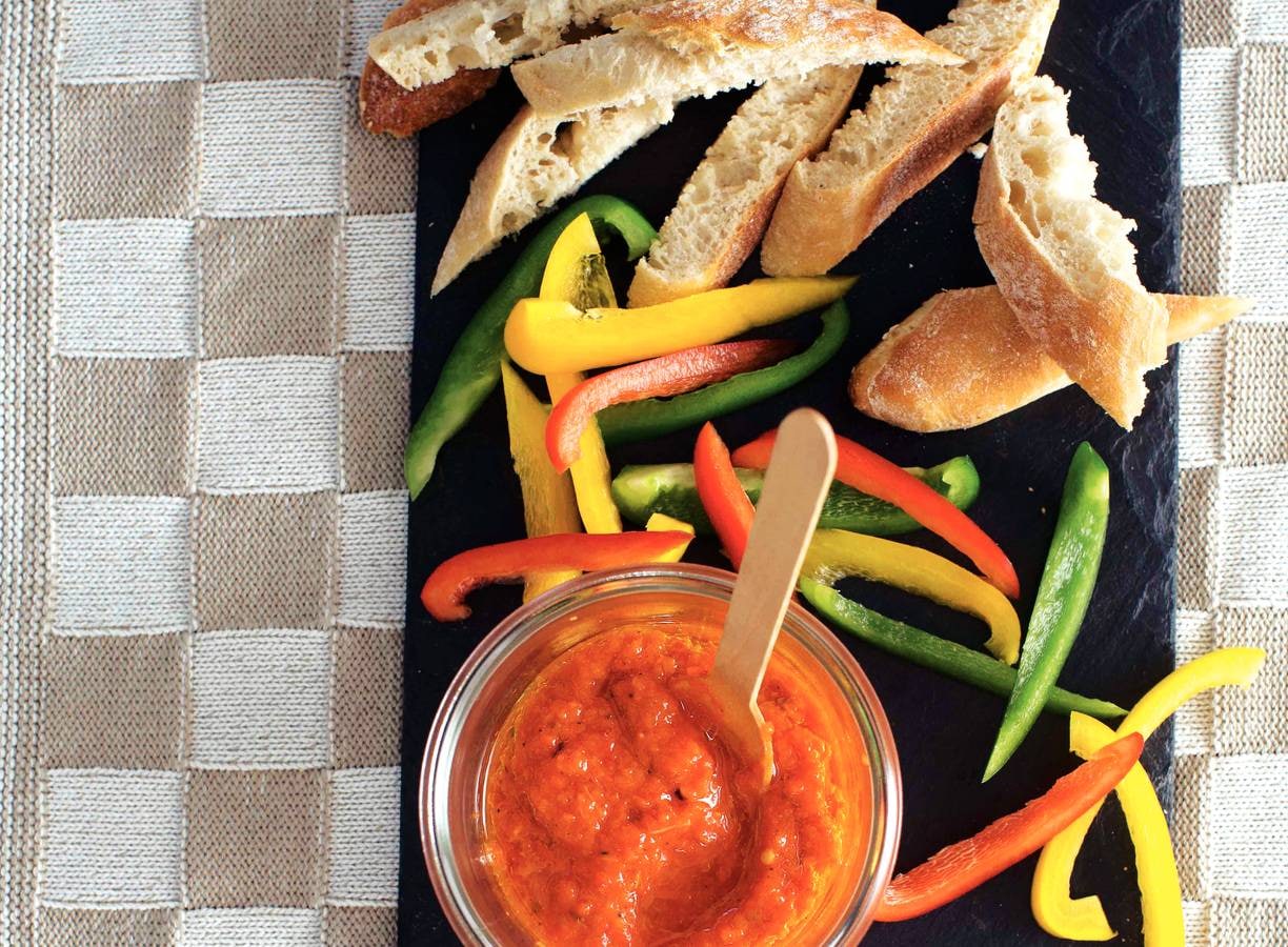 Pureer in de keukenmachine of met de staafmixer de paprika's, knoflook, balsamicoazijn, olijfolie, komijn en gembersiroop tot een gladde saus. Breng op smaak met peper en zout. Lekker met koude gehaktballetjes, stokbrood of reepjes paprika om te dippen.