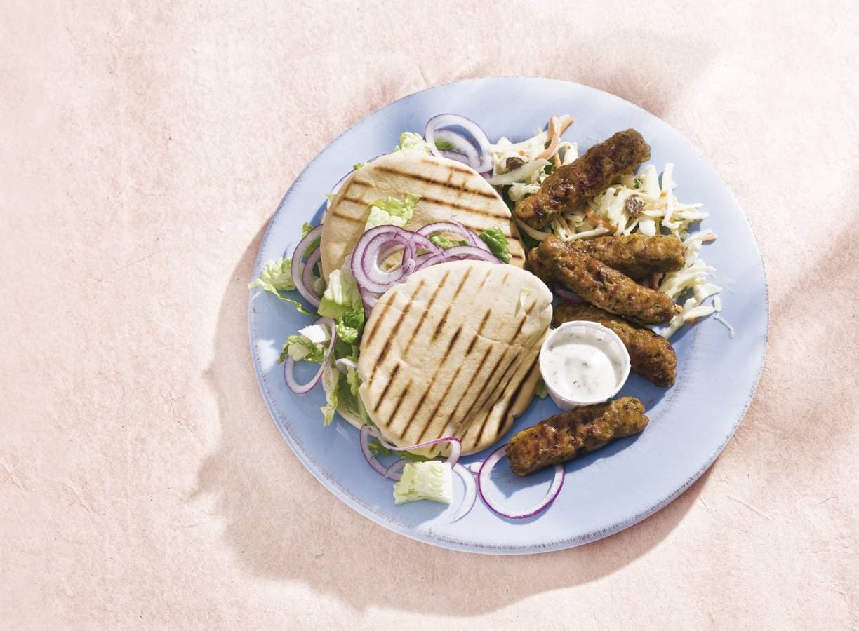 Verhit de grillpan of steek de barbecue aan. Gril de worstjes in 5 min. goudbruin en gaar. Keer regelmatig. Gril ondertussen de shoarmabroodjes 3 min. in de grillpan of op de barbecue. Keer halverwege.