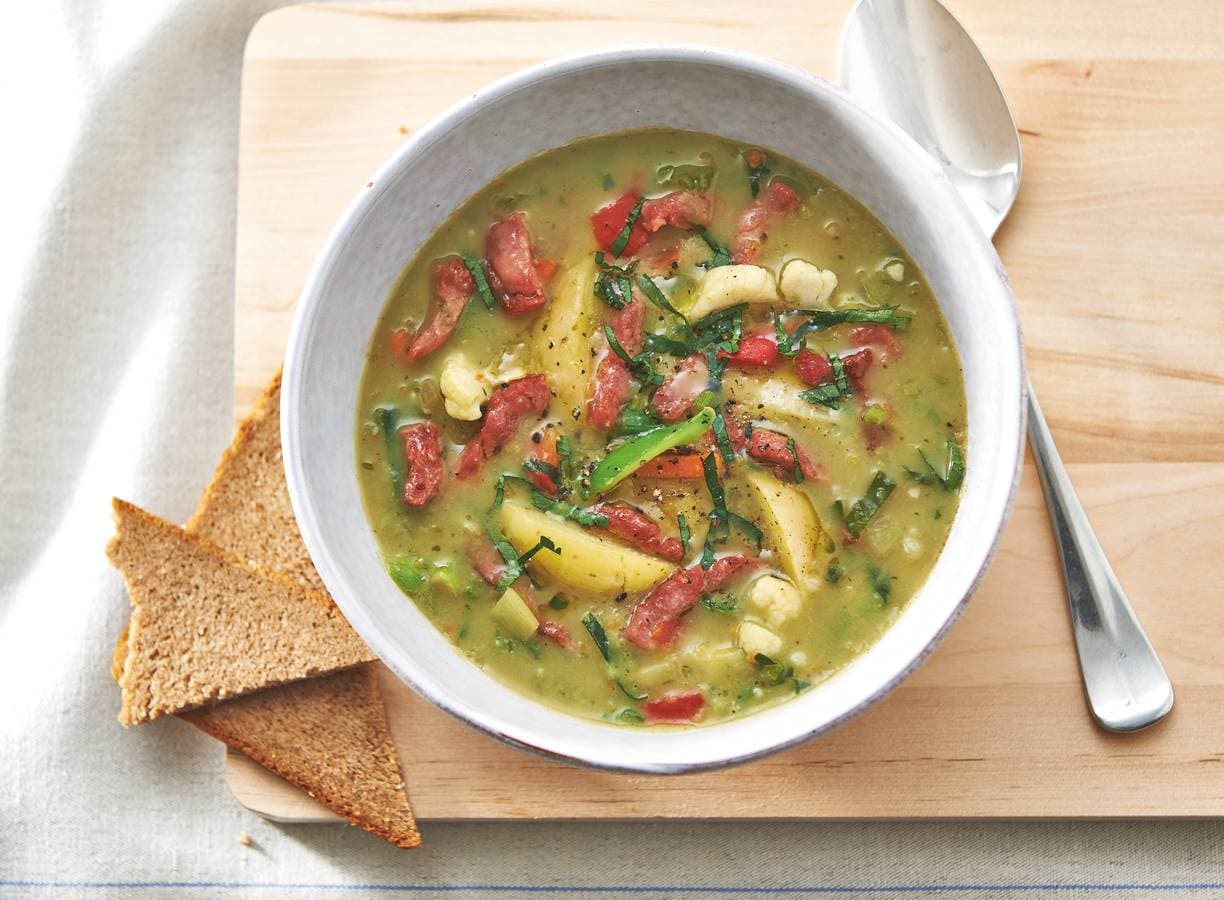 Snelle, goedgevulde maaltijdsoep met bacon.