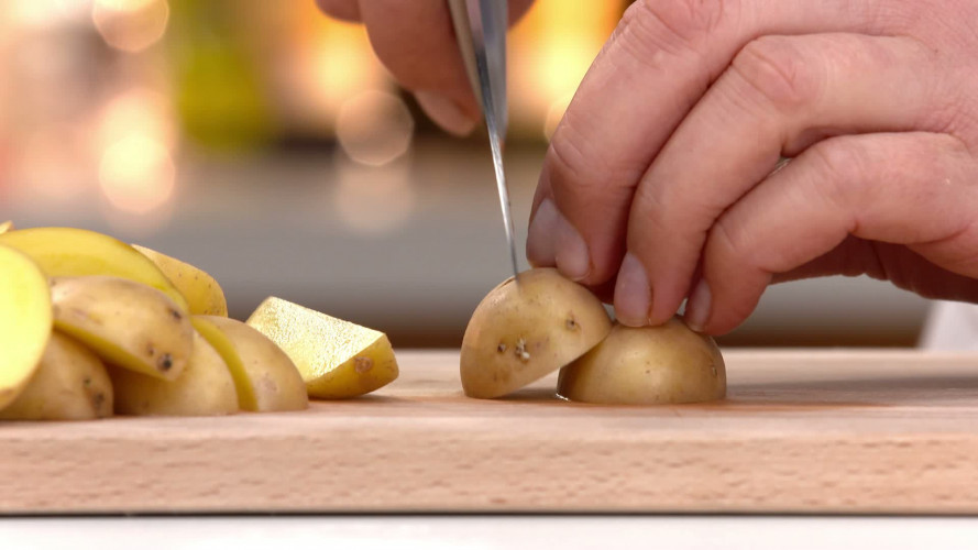 Aardappelsalade met lamsham stap 1