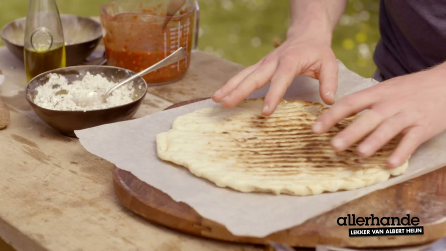 Gegrilde pizza met rauwe ham en truffelmascarpone stap 8