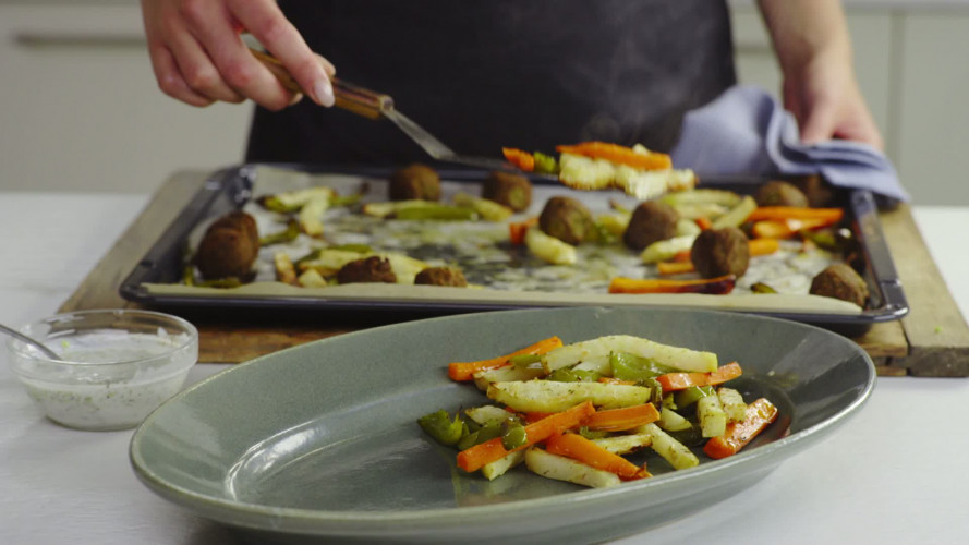 Groentefriet met falafel en yoghurtsaus Stap 7.mp4