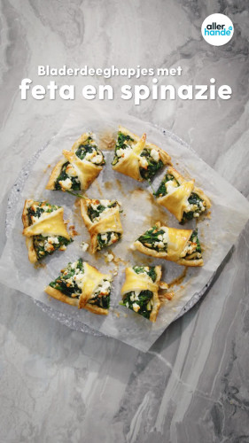 Bladerdeeghapjes met feta en spinazie